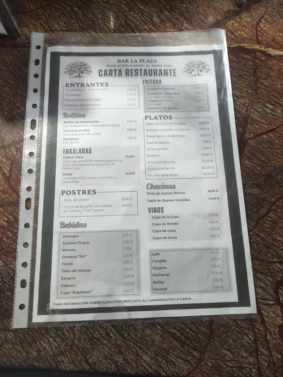 Bar La Plaza offers a thoughtfully curated menu that balances traditional Spanish flavors with subtle creative touches, perfect for a relaxed meal or casual bites throughout the day. The menu leans toward comforting, home-style dishes alongside carefully prepared tapas that pair naturally with the easygoing, sunlit atmosphere of the plaza.